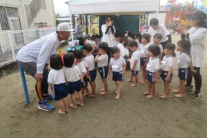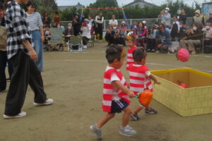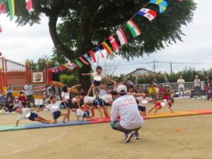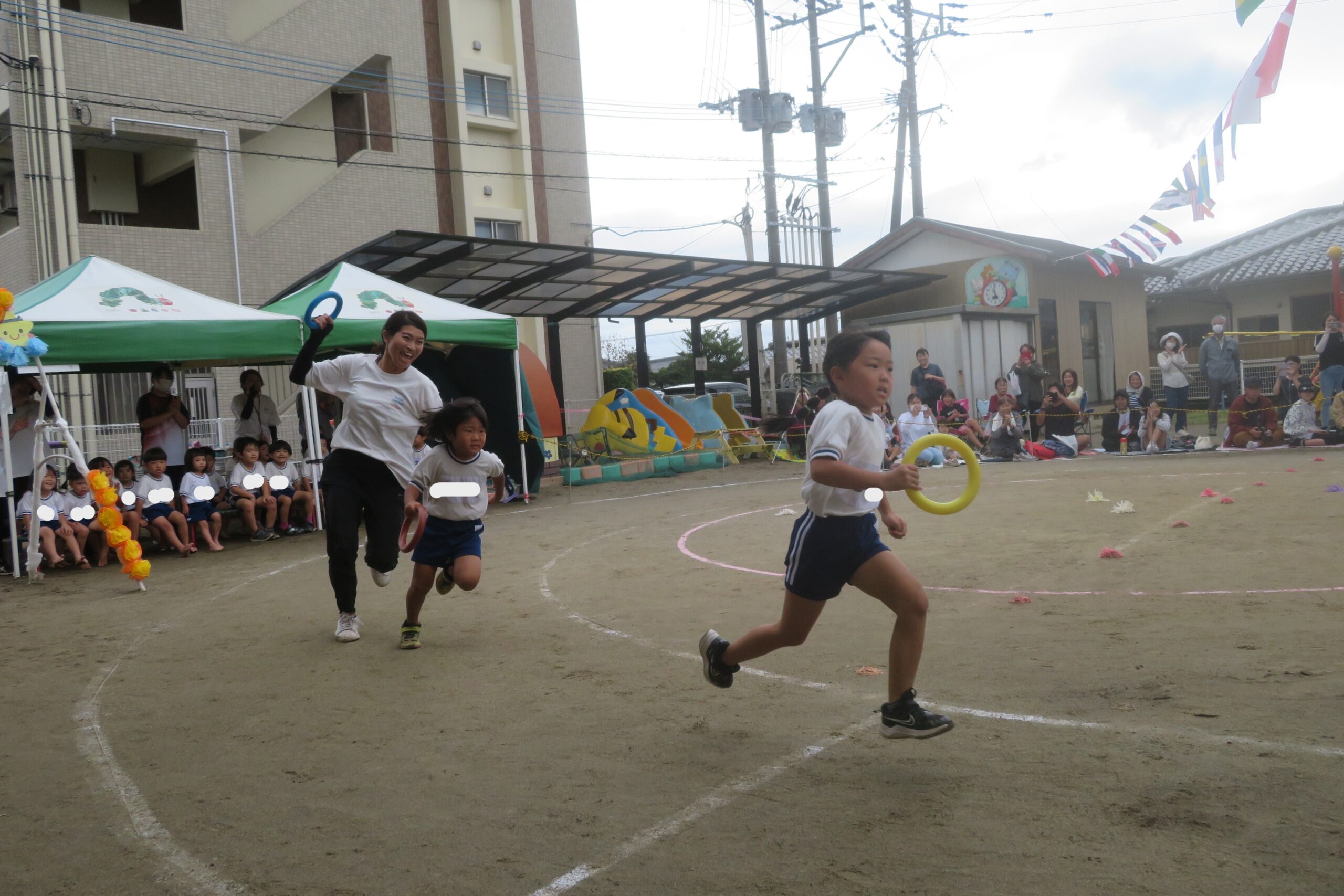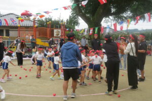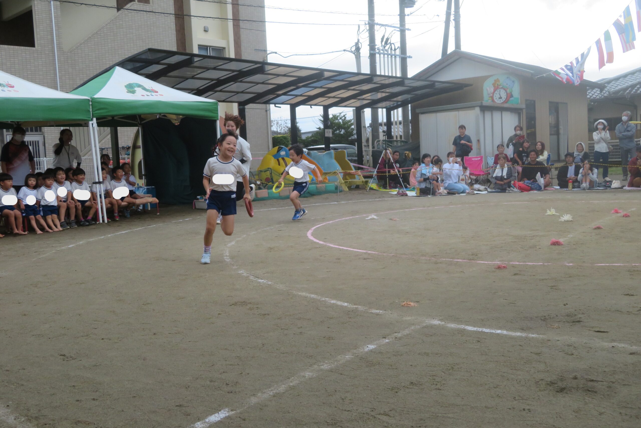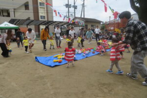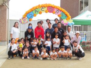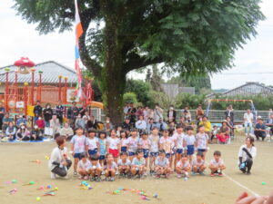10月25日運動会がありました。天気が心配でしたが、園庭で開催できほっとしました。今まで一生懸命練習してきた子どもたち。年長さんは、最後の運動会でおうちの人を感動させたい!と当日も張りきって登園してきましたよ。未満児さんも年少、年中さんも練習の成果が発揮でき、笑顔が輝く楽しい運動会となりました。
