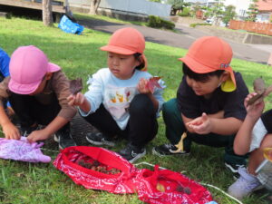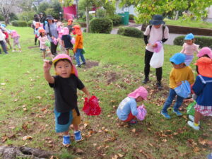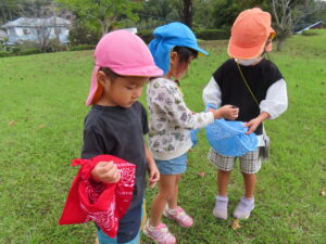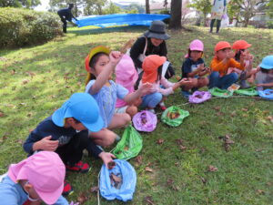 子どもたちから、「今日の活動楽しかった!」「またやりたい」との声もたくさん聞かれました。今日拾った木の実や葉っぱは、クリスマスリース作りに活躍する予定です。