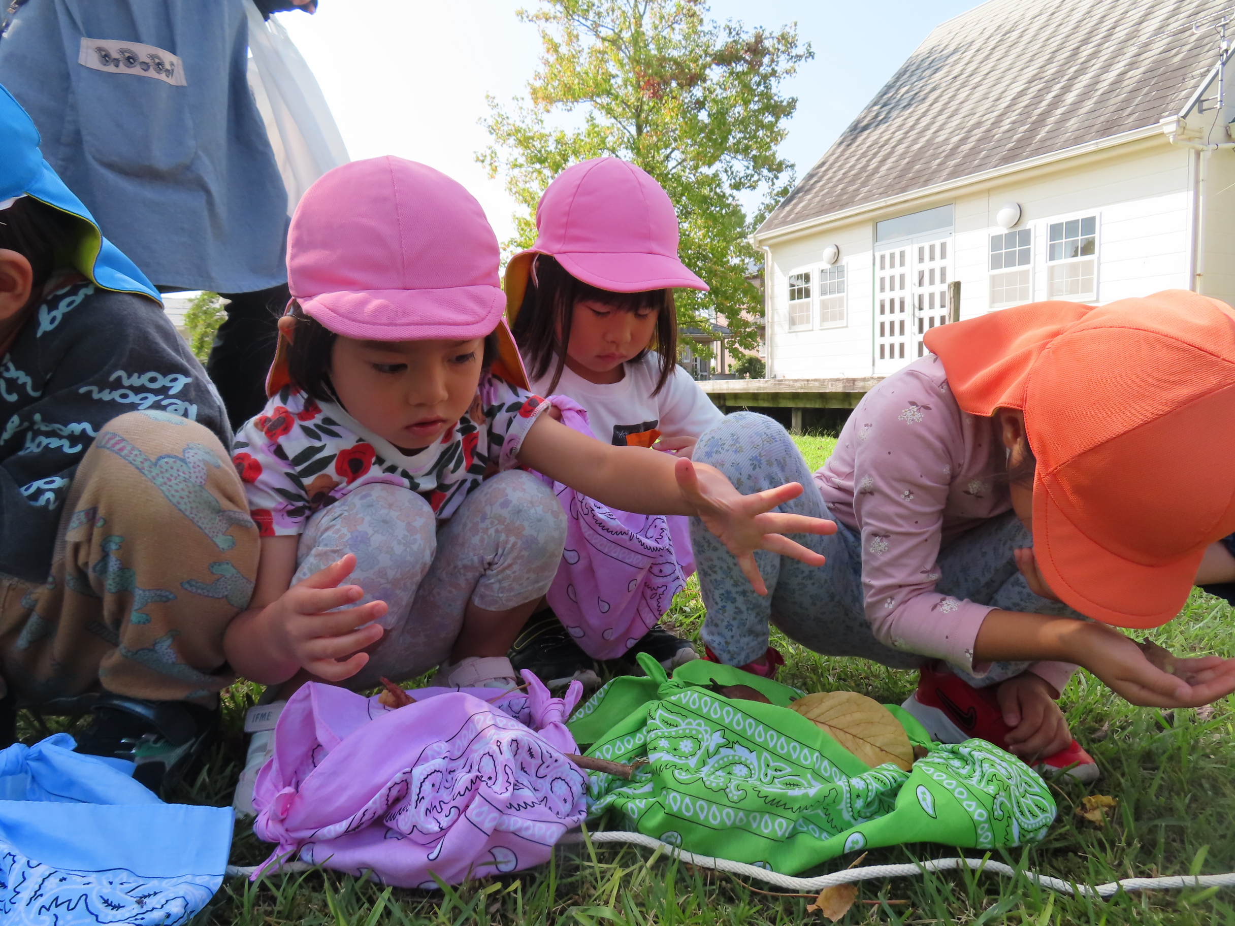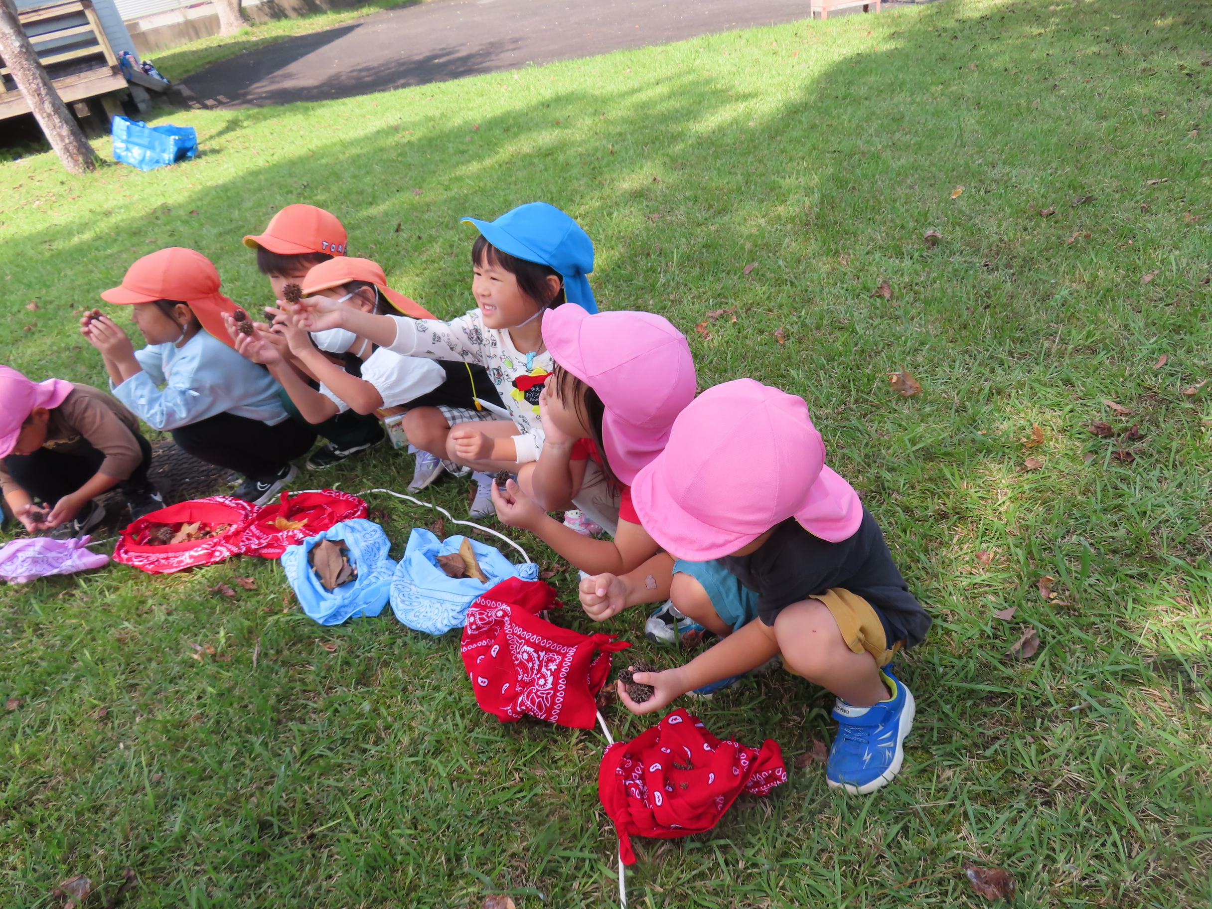 子どもたちから、「今日の活動楽しかった!」「またやりたい」との声もたくさん聞かれました。今日拾った木の実や葉っぱは、クリスマスリース作りに活躍する予定です。