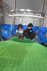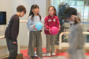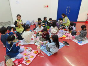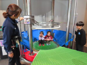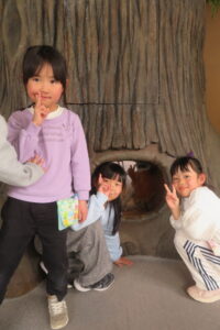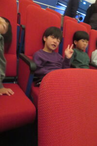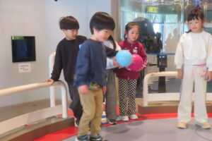 園外学習で、科学技術館へ行ってきました。コスモランド教室では、忍者と一緒にクイズをしたり、プラネタリウムを見て楽しみました。プラネタリウムでは、星空が天井にいっぱいに広がると、「わぁー!」と歓声があがりました。一人も飽きることなく50分間真剣に見ることができました。その後は、館内で、シャボン玉を作ったり、ボールを転がしたりして楽しみました。今日一日楽しかった!!と大満足な子どもたちでした。