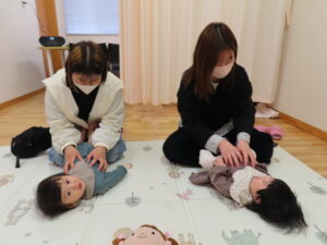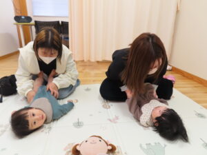 国富こすもす保育園に5か月と7カ月の小さなお友だちが遊びに来てくれました。